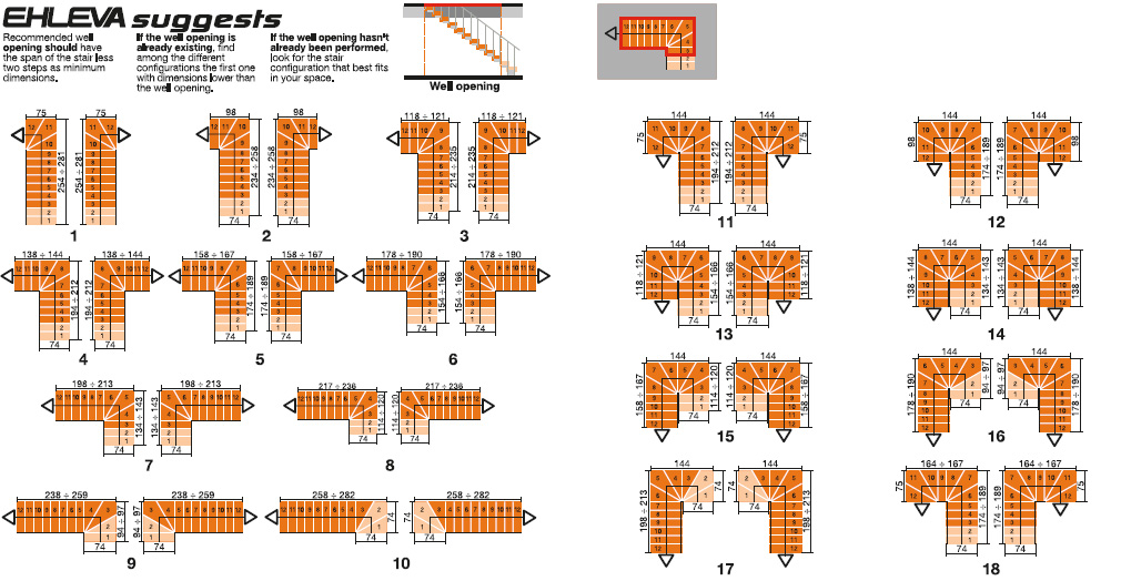 *The configurations available on the Stilo Modular Staircase are designed to satisfy most European regulations. However, please check with your local Building Control that your chosen configuration is acceptable to them. The balustrading on the Stilo Modular Stair Kit should comply with the 100mm gap rule. Please contact us if you would like further advice. You’ll find more information on the Technical Tab.