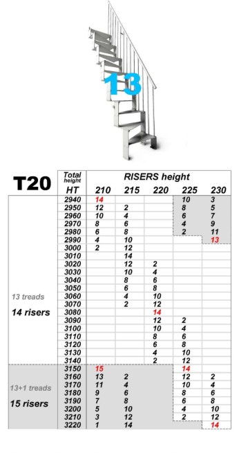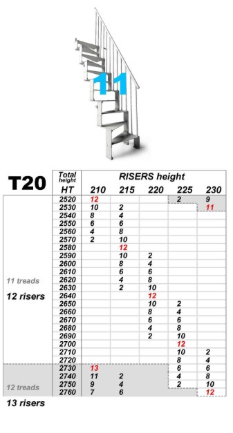 | Individual Tread RISE | :: | adjustable from 210mm to 230mm |