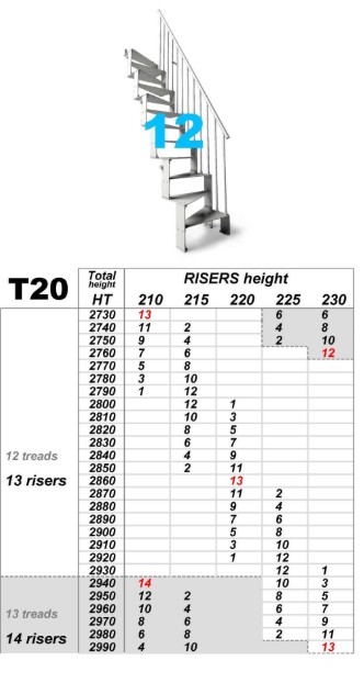 The T20 Spacesaver kit is available in three size options – 11 treads, 12 treads and 13 treads. You also have four colour options for this neat staircase – White, Grey, Black and Dark Grey/Bronze.