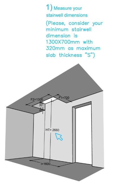 | Staircase Width | :: | 640mm (25.25″) with 2 balustrades |
