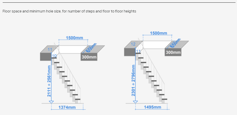 | Standard Kit suits | :: | floor to floor height of 2090mm – 2585mm* (please see note below on regulation tread rise) |