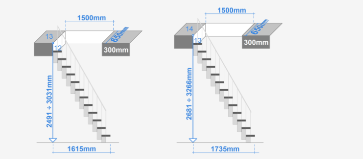 | Staircase Width | :: | 596mm (23.5″) with 1 balustrade |