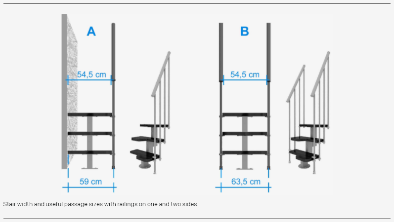 | Staircase Width | :: | 630mm (24.8″) with 2 balustrades |